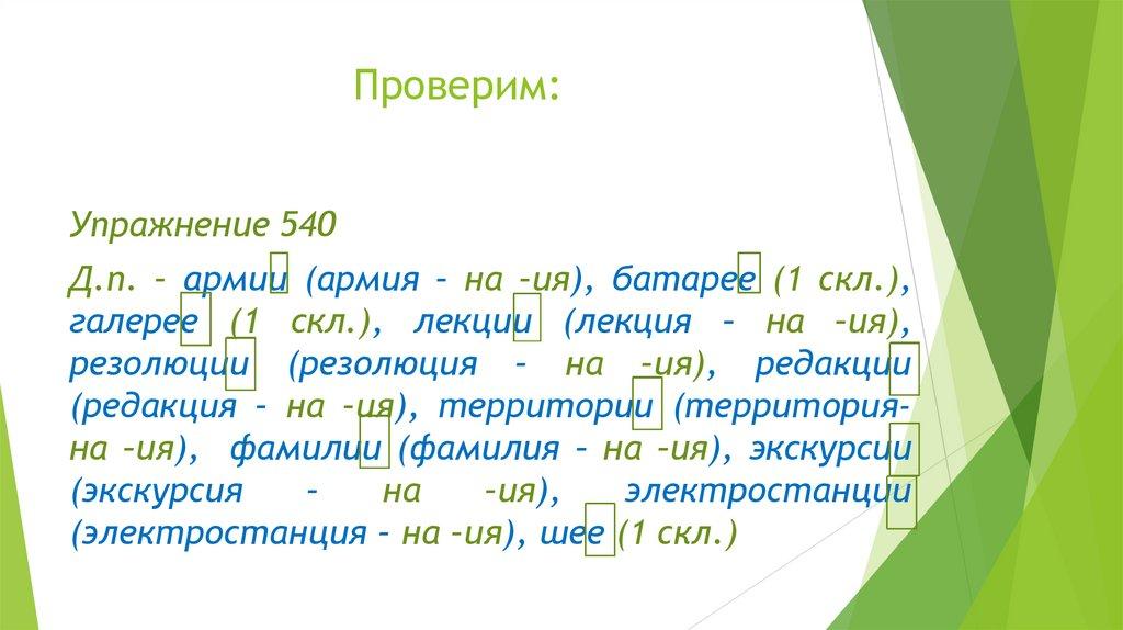 (редакция – на –ия), территории (территорияна –ия), фамилии (фамилия – на –ия), экскурсии