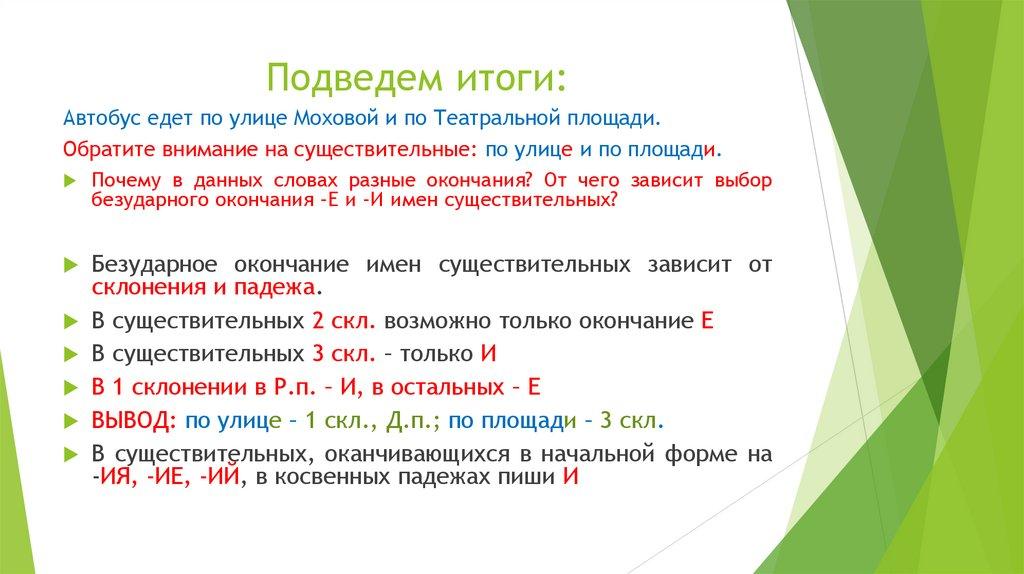 ВЫВОД: по улице – 1 скл., Д.п.; по площади – 3 скл.