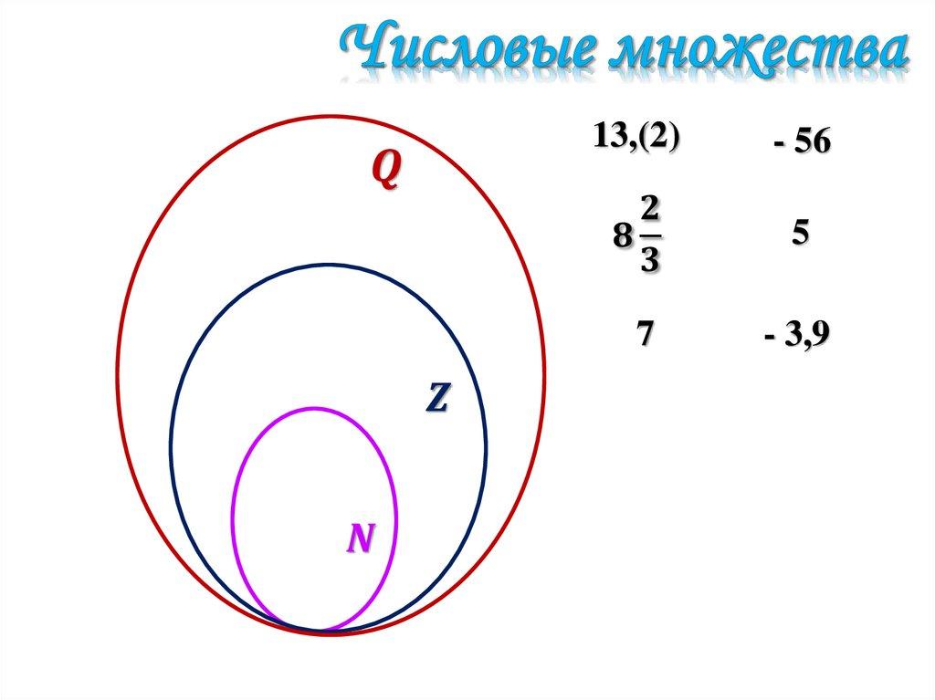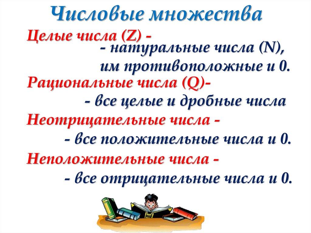 Числовые множестваЦелые числа (Z) - натуральные числа (N),
