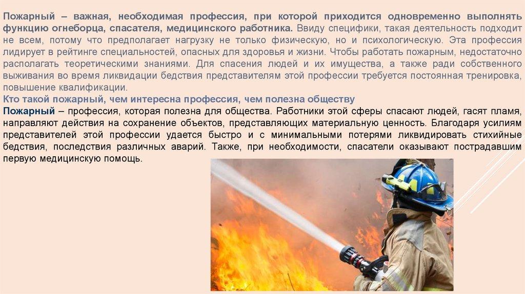 Кто такой пожарный, чем интересна профессия, чем полезна обществу
