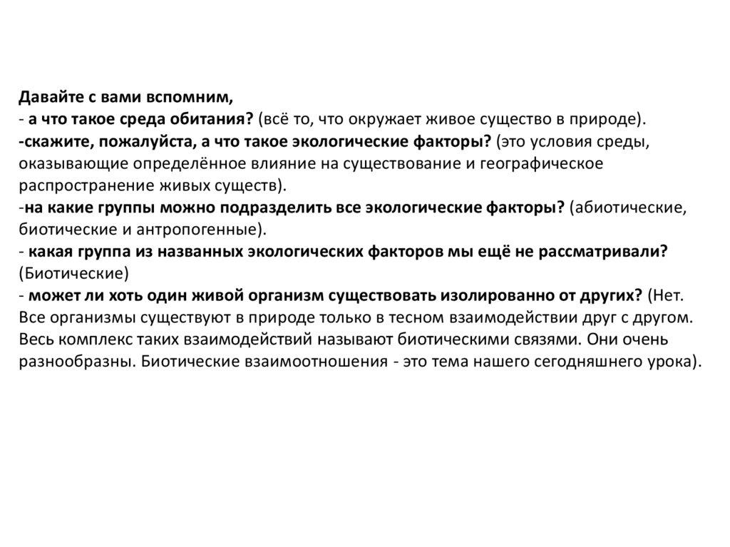 - может ли хоть один живой организм существовать изолированно от других? (Нет.