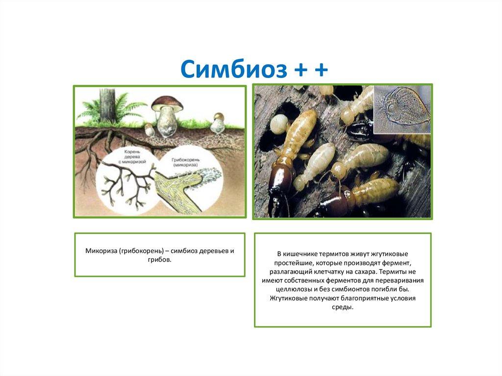 Симбиоз + +Микориза (грибокорень) – симбиоз деревьев и