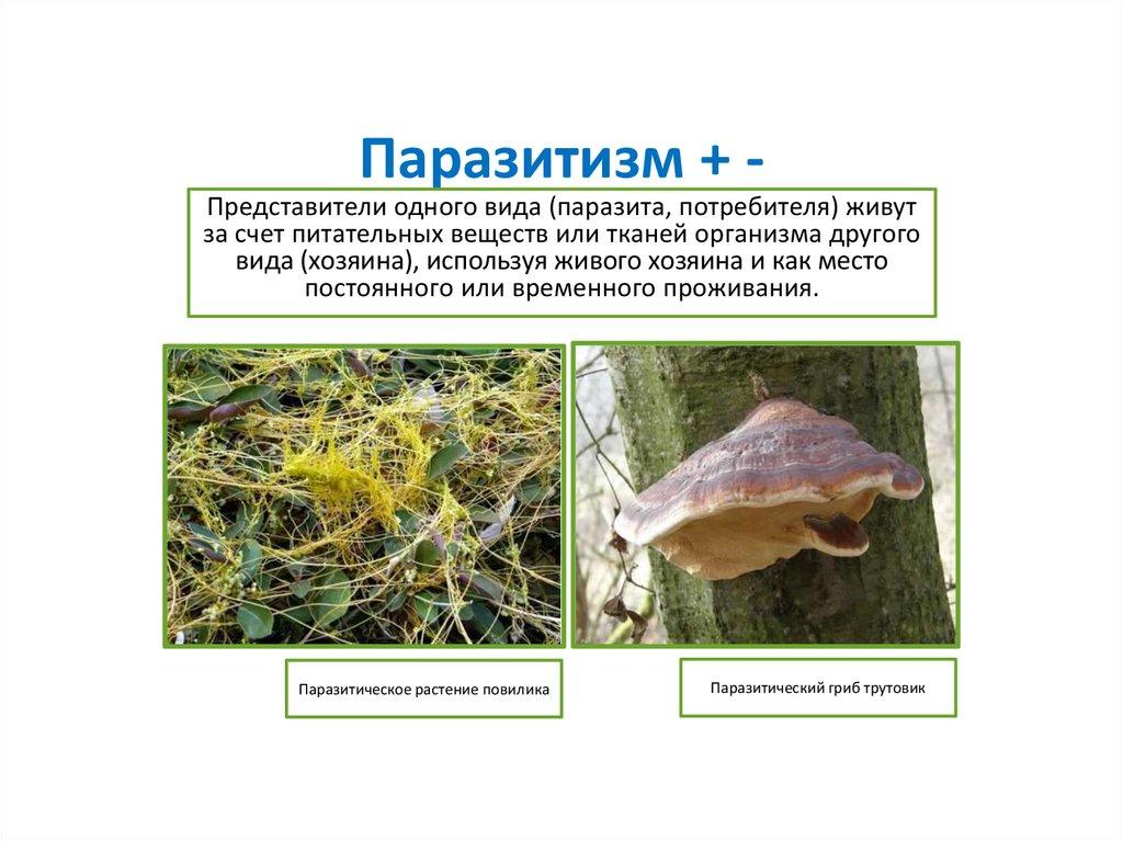 Паразитизм + Представители одного вида (паразита, потребителя) живутза счет питательных веществ или тканей организма другого