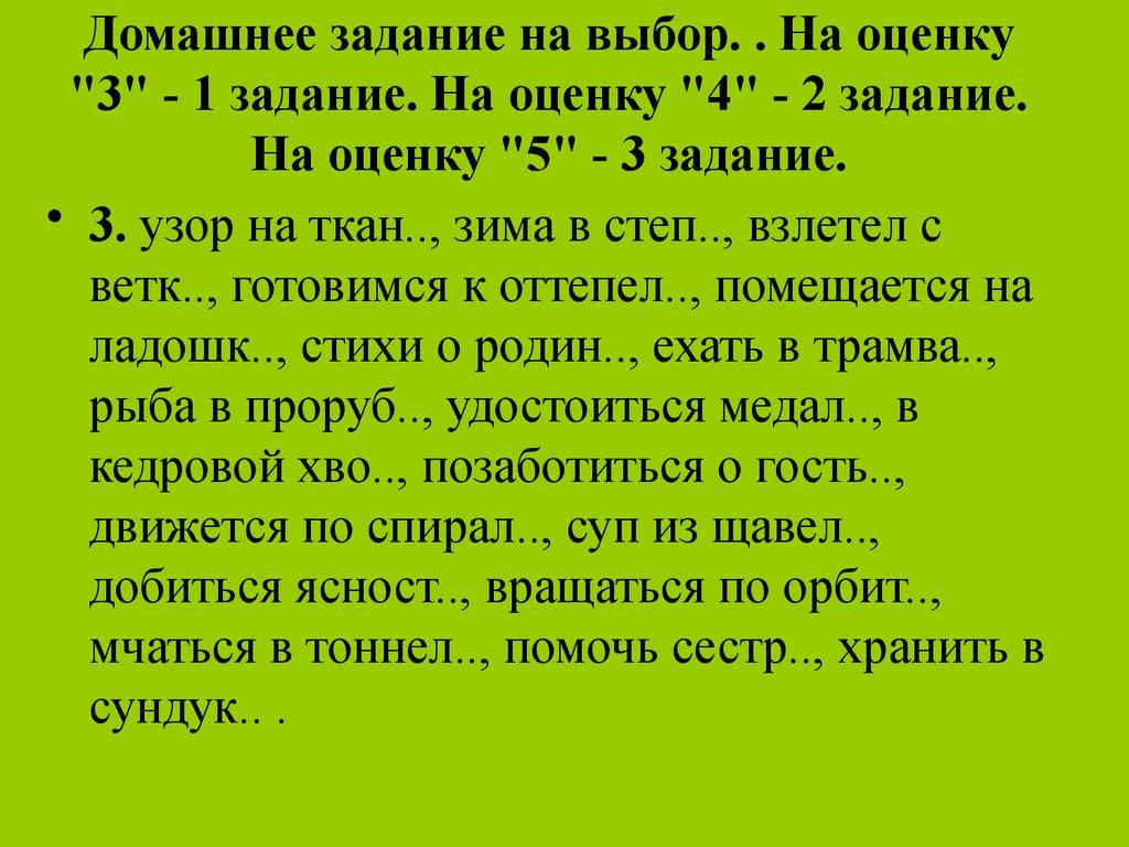 Домашнее задание на выбор. . На оценку"3" - 1 задание. На оценку "4" - 2 задание.