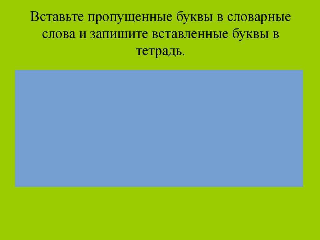 Вставьте пропущенные буквы в словарныеслова и запишите вставленные буквы в