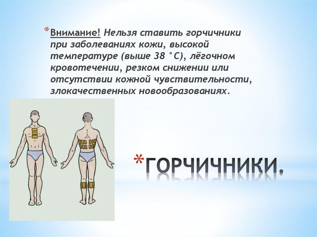 * Внимание! Нельзя ставить горчичникипри заболеваниях кожи, высокой