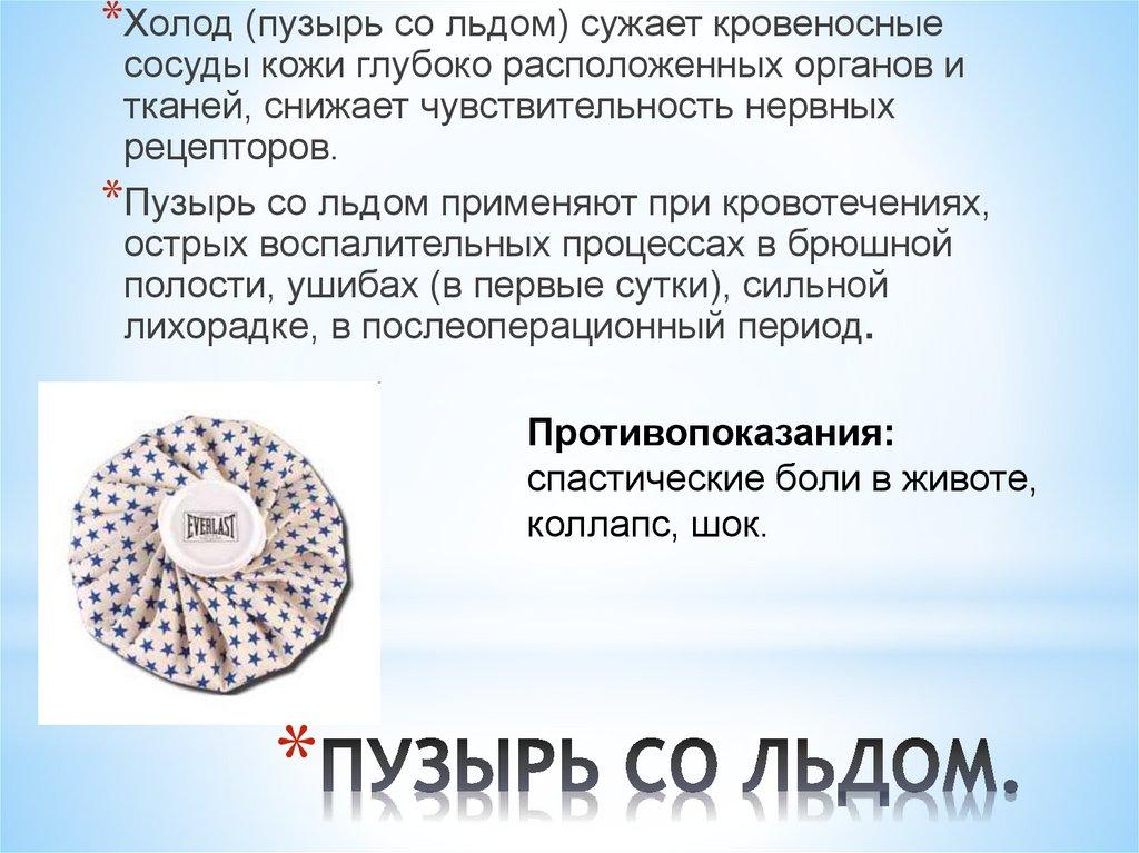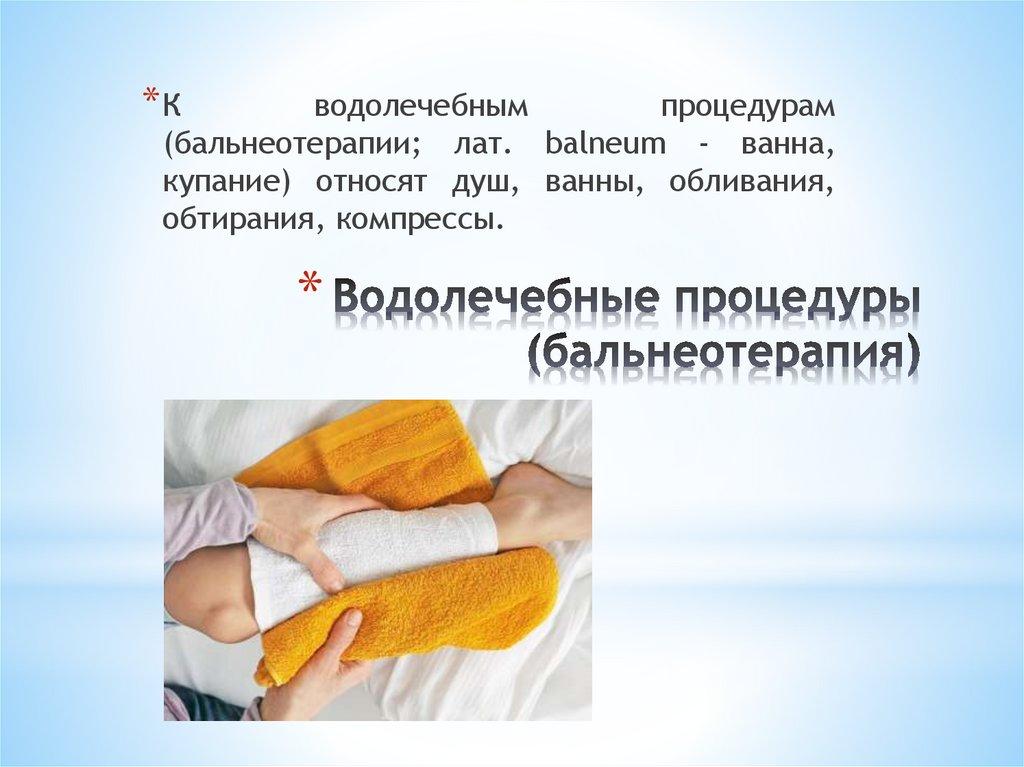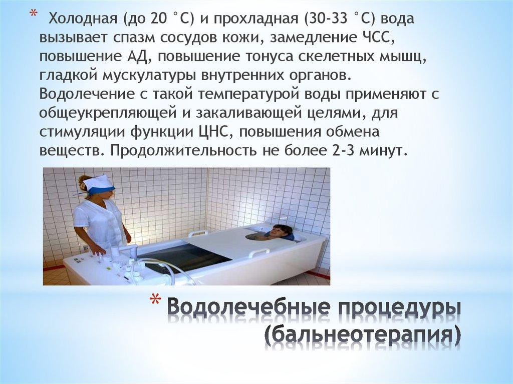 * Холодная (до 20 °С) и прохладная (30-33 °С) водавызывает спазм сосудов кожи, замедление ЧСС,