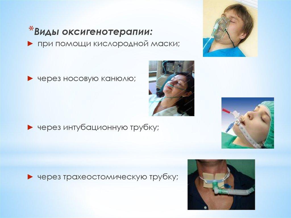 *Виды оксигенотерапии:► при помощи кислородной маски;