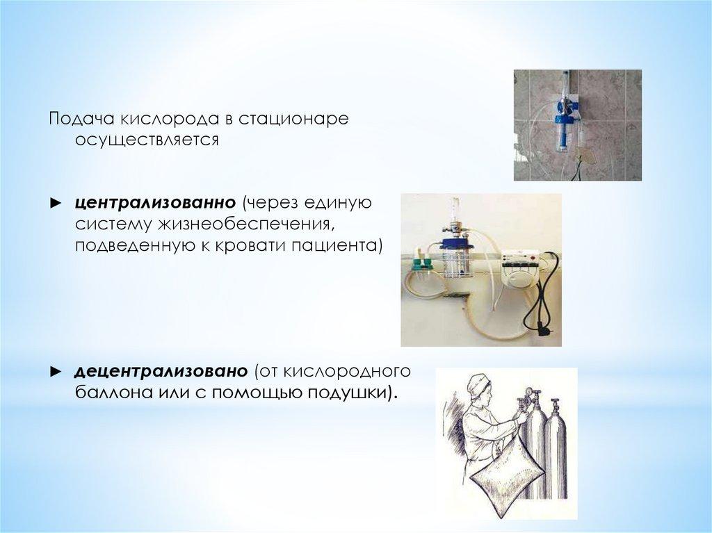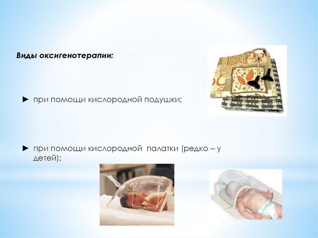 Виды оксигенотерапии:► при помощи кислородной подушки;