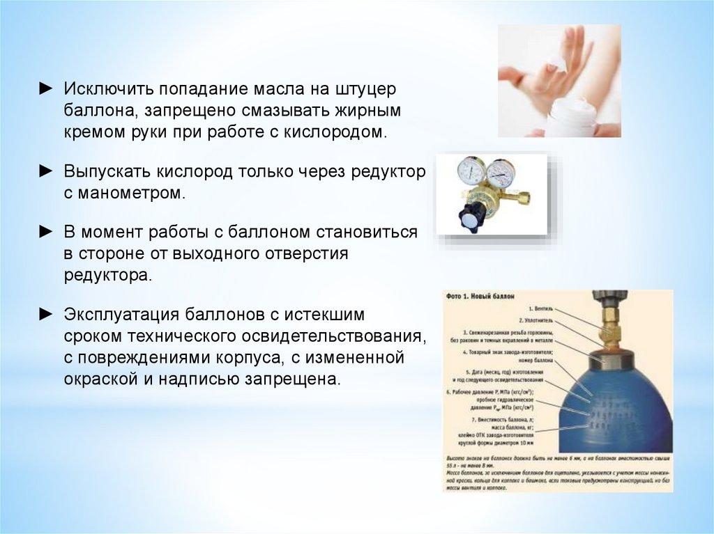 ► Исключить попадание масла на штуцербаллона, запрещено смазывать жирным