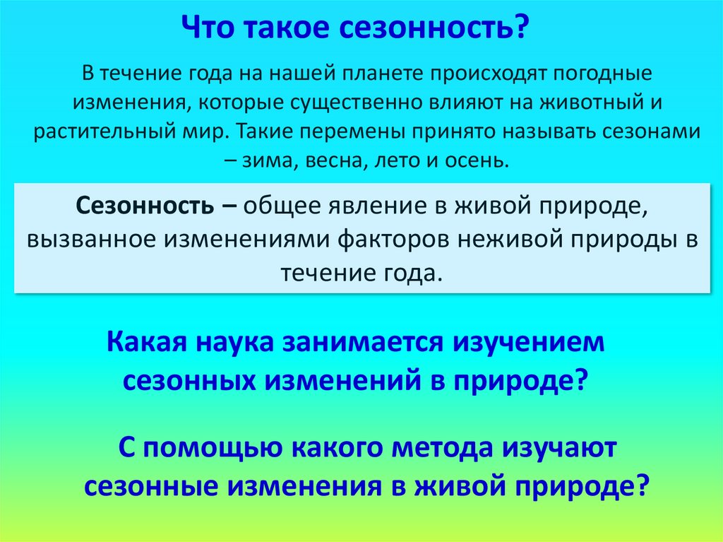 Что такое сезонность?В течение года на нашей планете происходят погодные