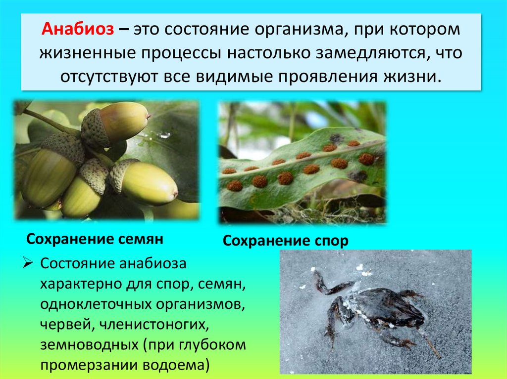 миграции, спячки, оцепенения и анабиоза.