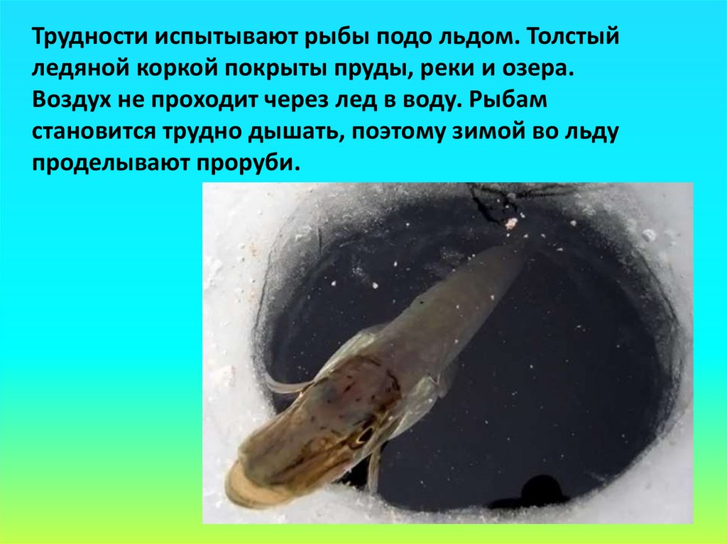 становится трудно дышать, поэтому зимой во льду