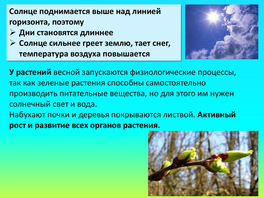 У растений весной запускаются физиологические процессы,