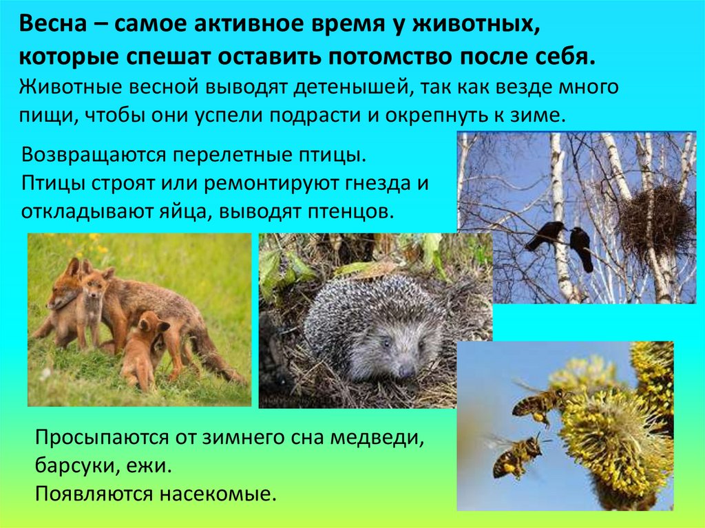 Животные весной выводят детенышей, так как везде много