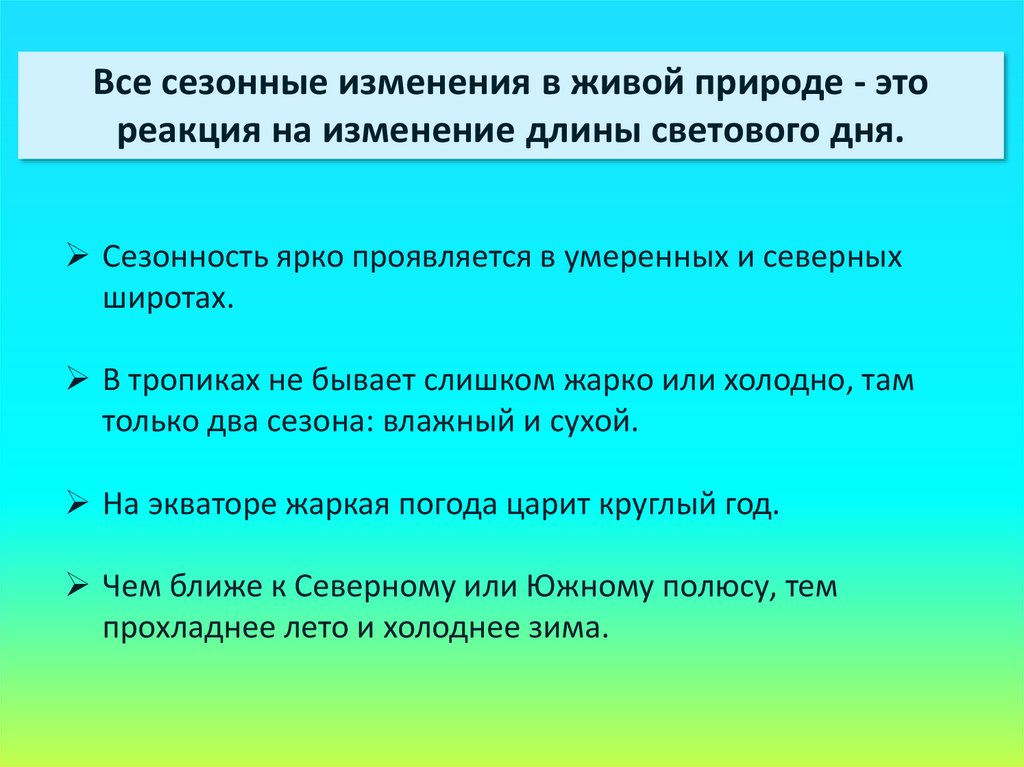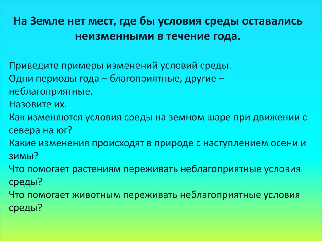 На Земле нет мест, где бы условия среды оставалисьнеизменными в течение года.
