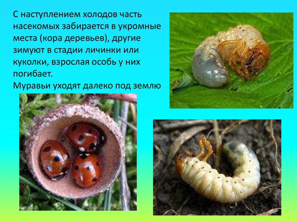 С наступлением холодов частьнасекомых забирается в укромные