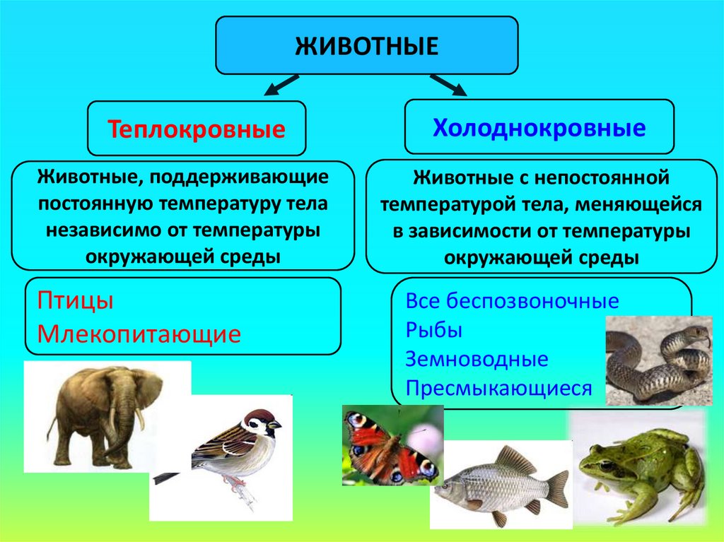 теплокровных и холоднокровных животных,