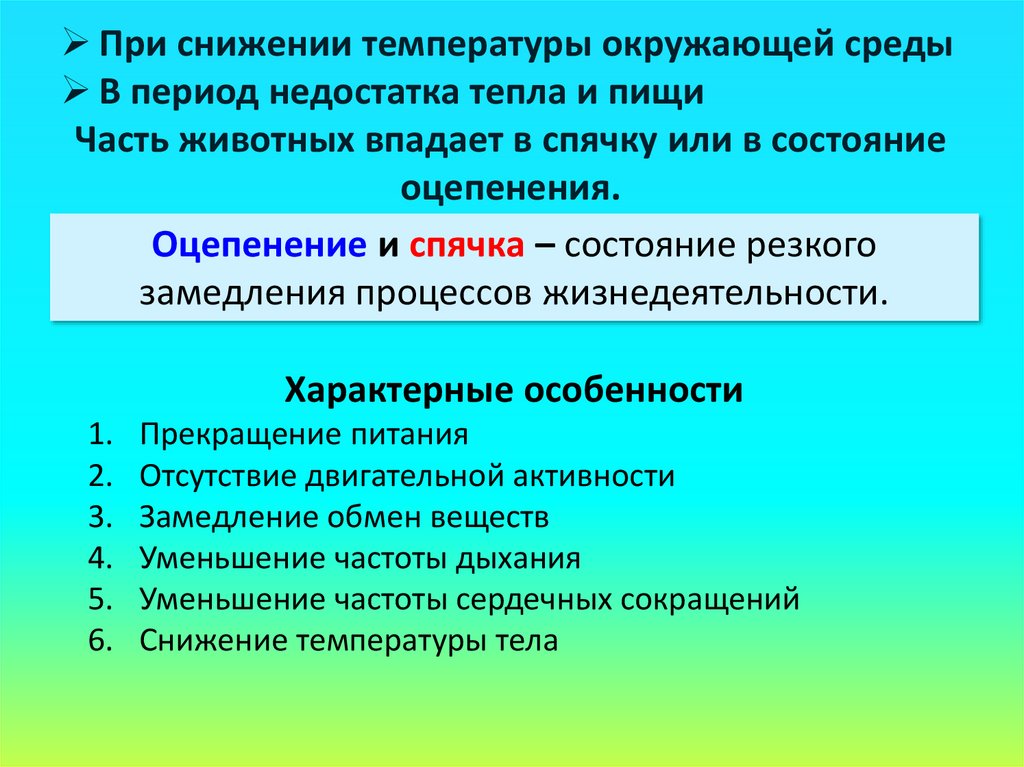замедления процессов жизнедеятельности.
