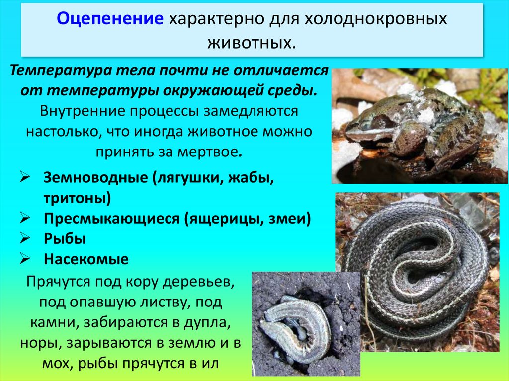 Оцепенение характерно для холоднокровныхживотных.