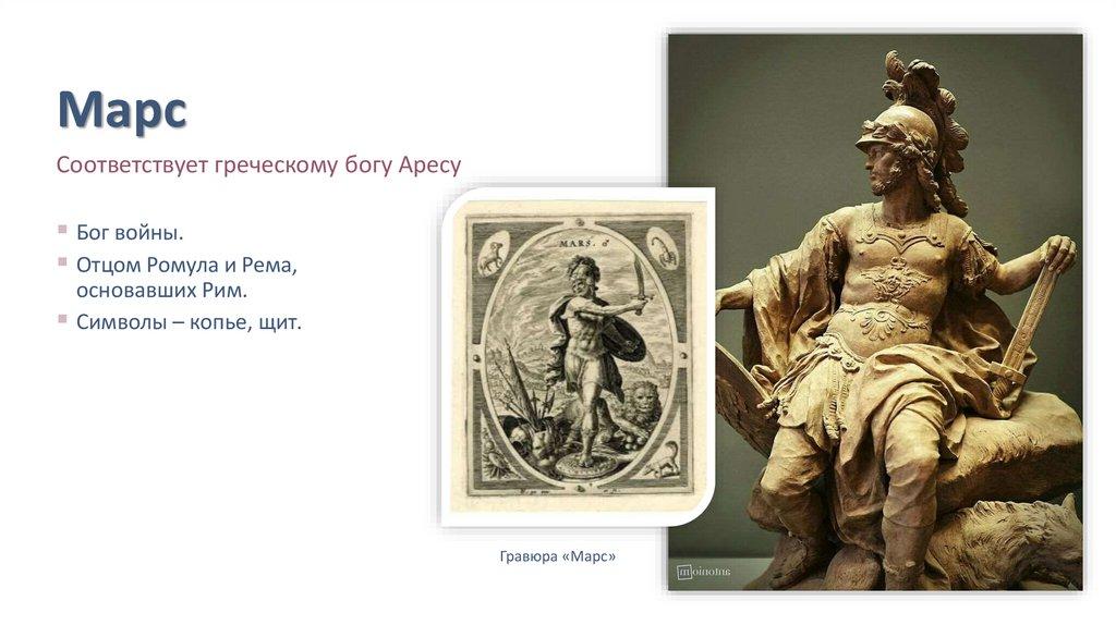Воины, отправляясь на войну, приходили в храм Марса, где он был изображён в доспехах, с шлемом в одной
