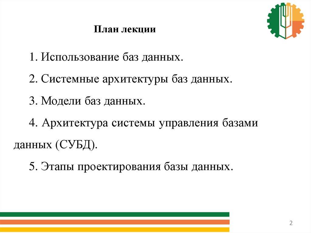 План лекции1. Использование баз данных.