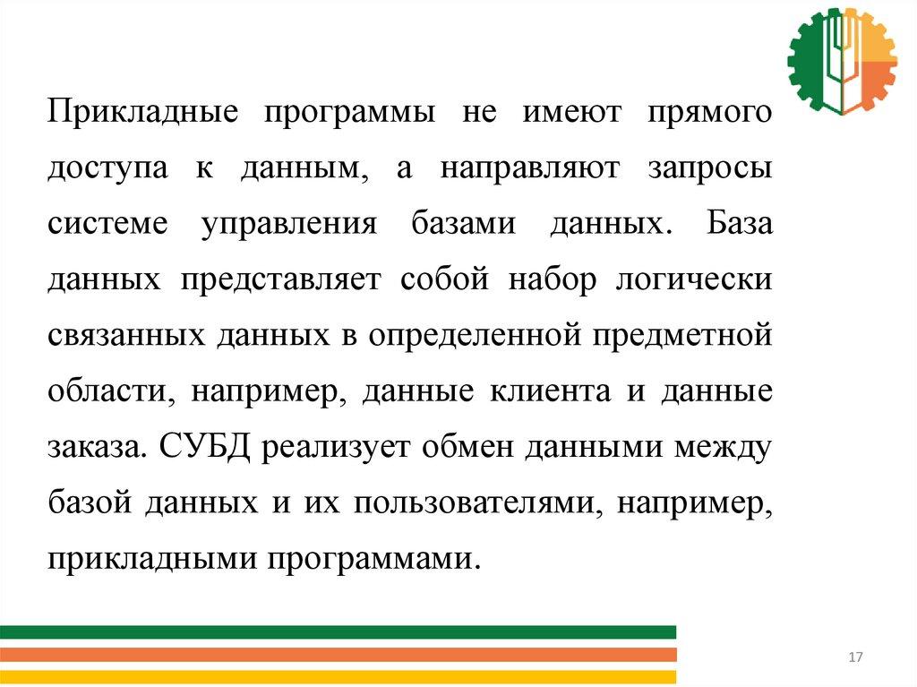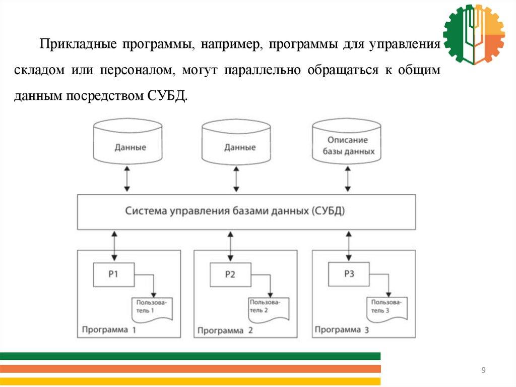 Прикладные программы, например, программы для управленияскладом или персоналом, могут параллельно обращаться к общим