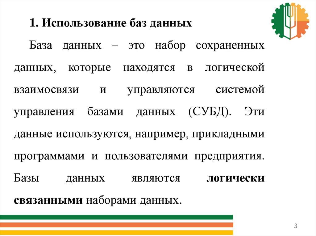 1. Использование баз данныхБаза данных – это набор сохраненных
