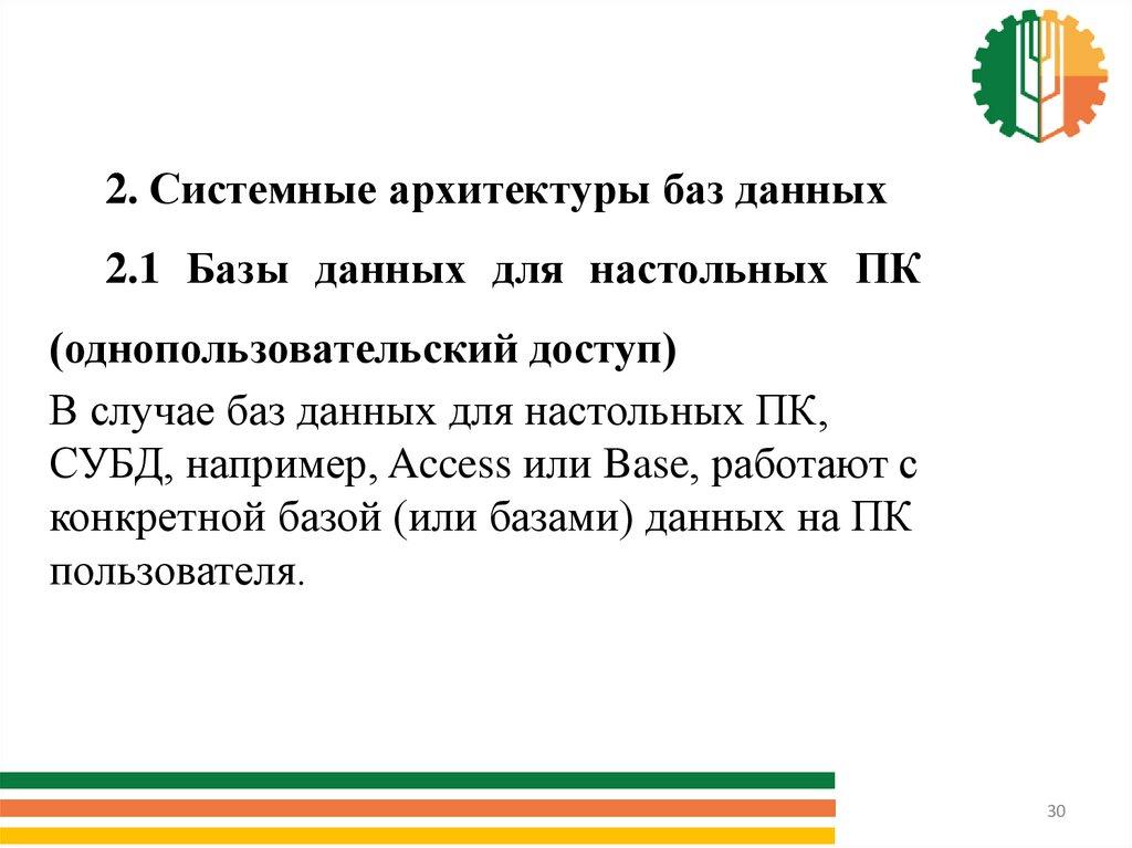 2. Системные архитектуры баз данных.