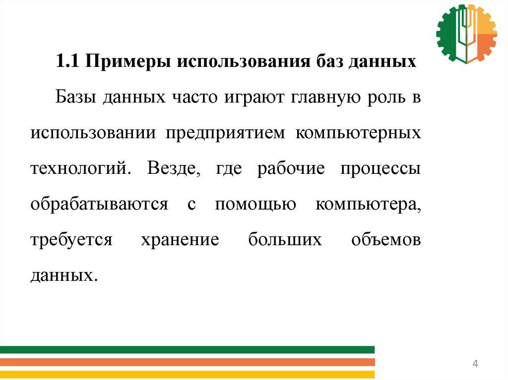 1.1 Примеры использования баз данныхБазы данных часто играют главную роль в