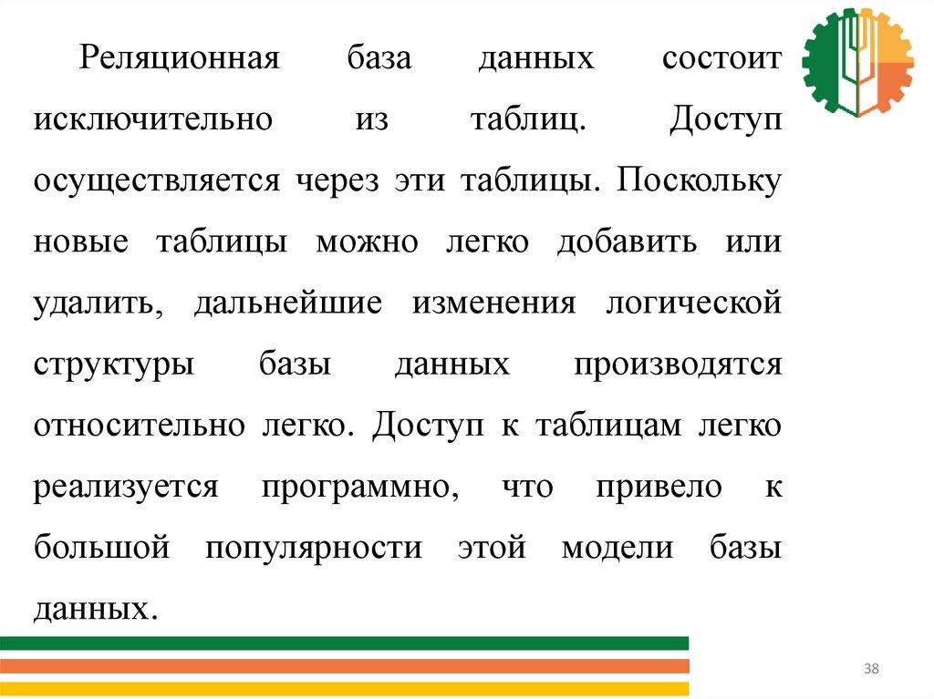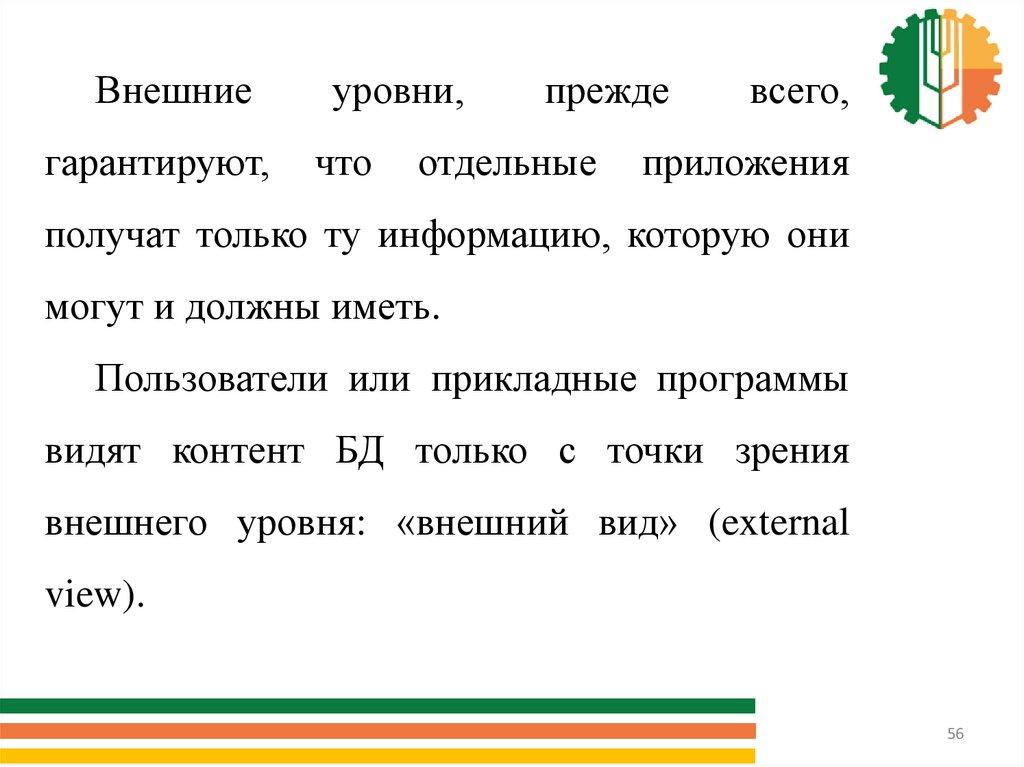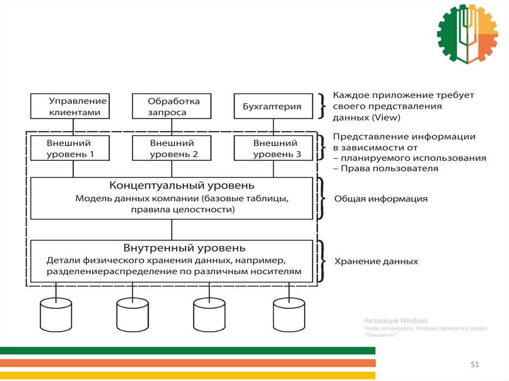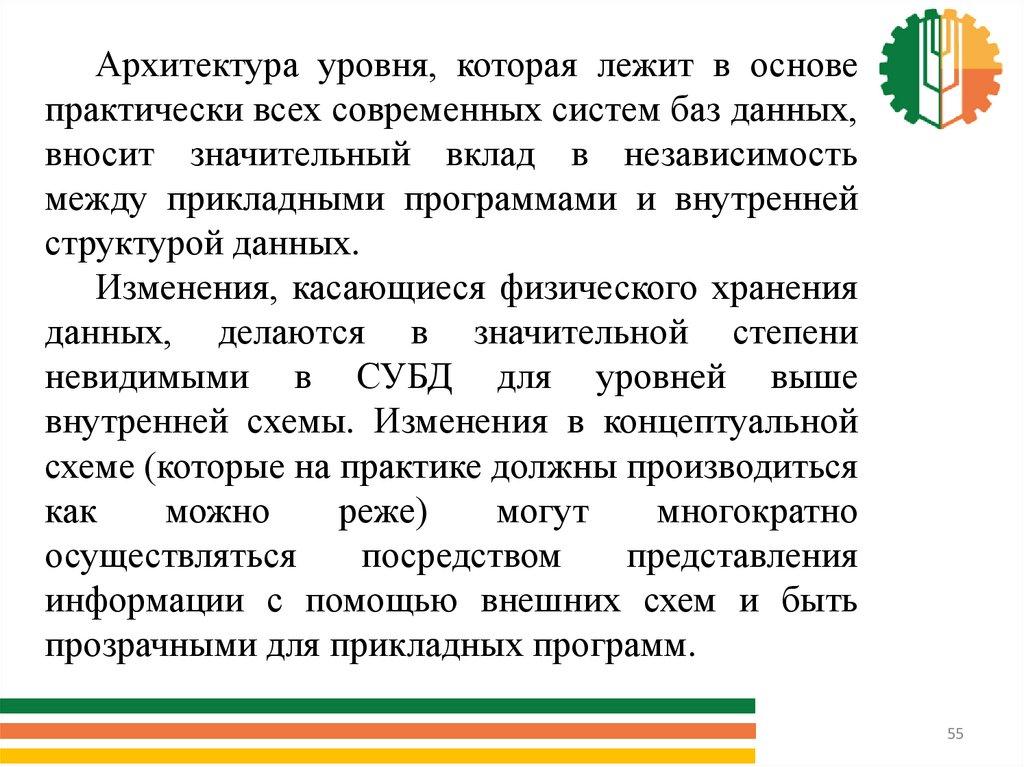 Архитектура уровня, которая лежит в основепрактически всех современных систем баз данных,