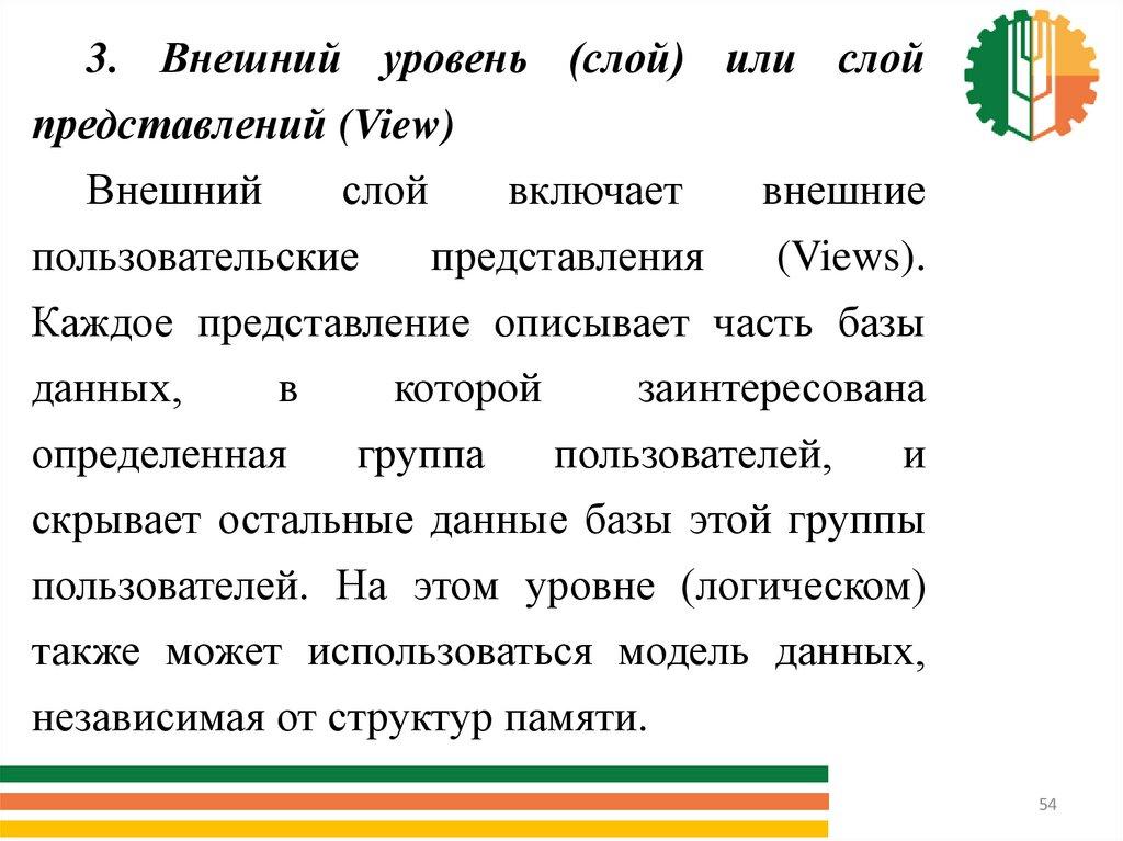 3. Внешний уровень (слой) или слойпредставлений (View)