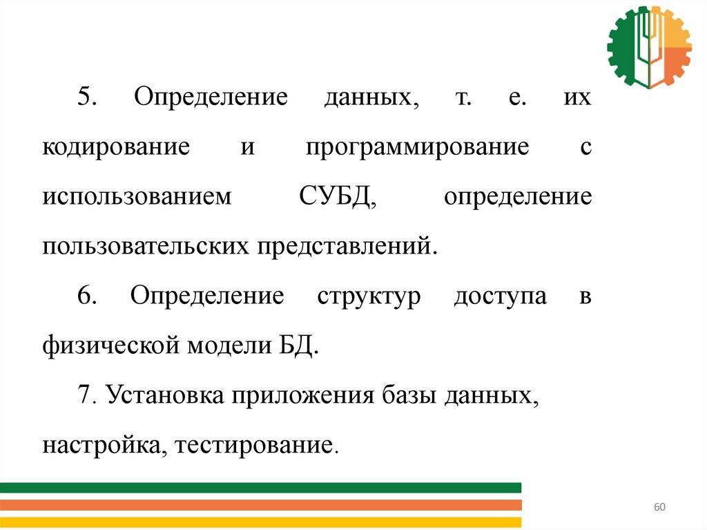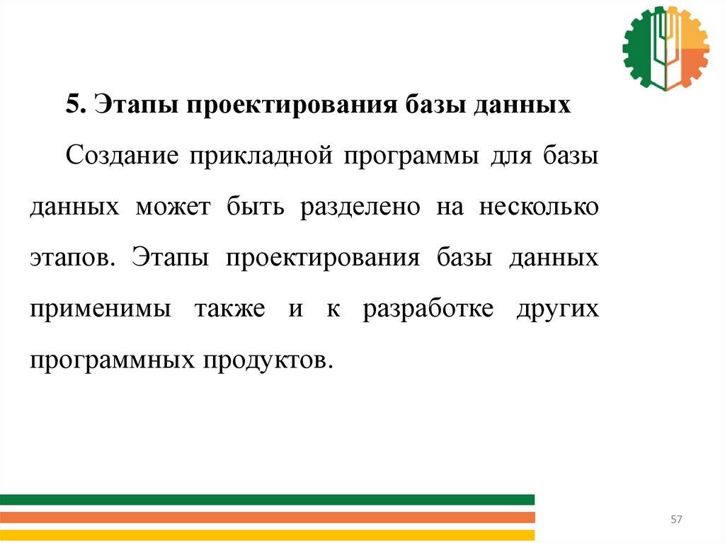 5. Этапы проектирования базы данныхСоздание прикладной программы для базы