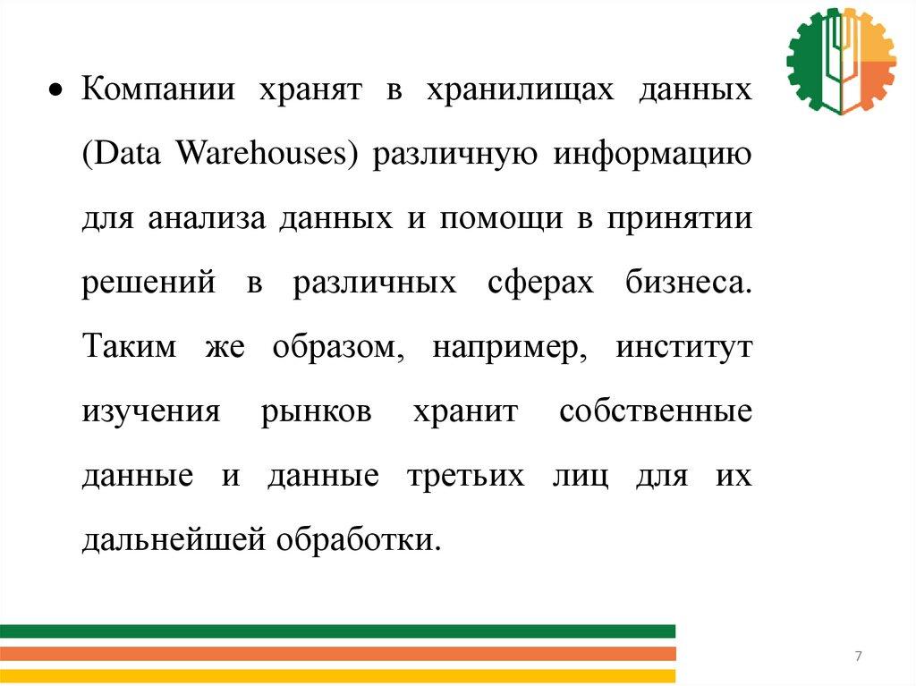 Компании хранят в хранилищах данных(Data Warehouses) различную информацию