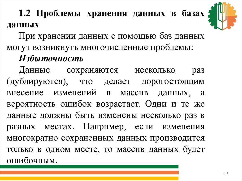 1.2 Проблемы хранения данных в базахданных