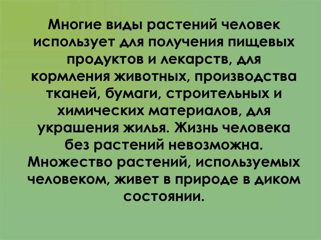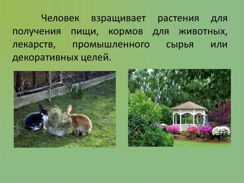 Человек взращивает растения дляполучения пищи, кормов для животных,