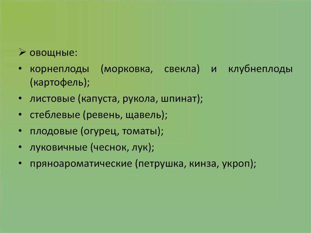 овощные:• корнеплоды (морковка, свекла) и клубнеплоды