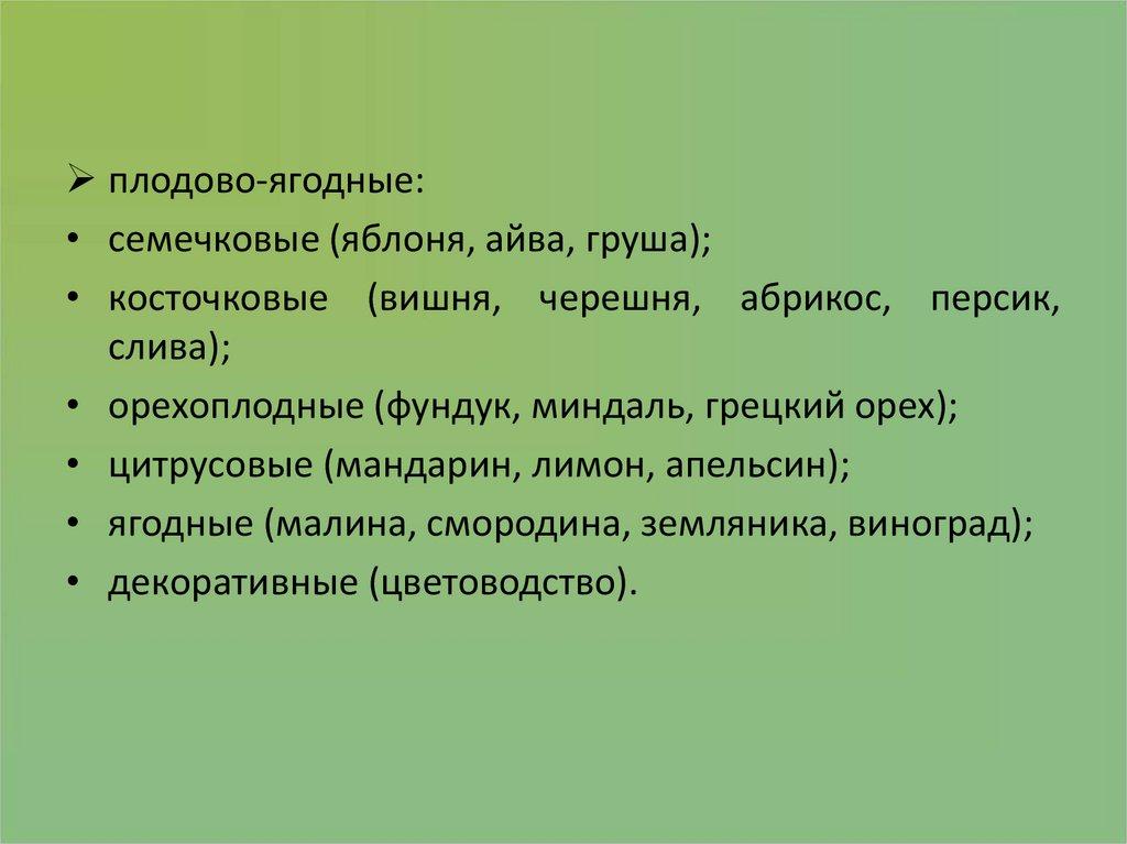 плодово-ягодные:• семечковые (яблоня, айва, груша);