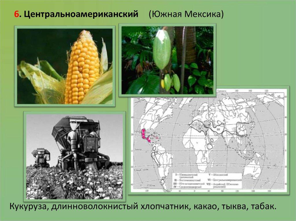 Кукуруза, длинноволокнистый хлопчатник, какао, тыква, табак.
