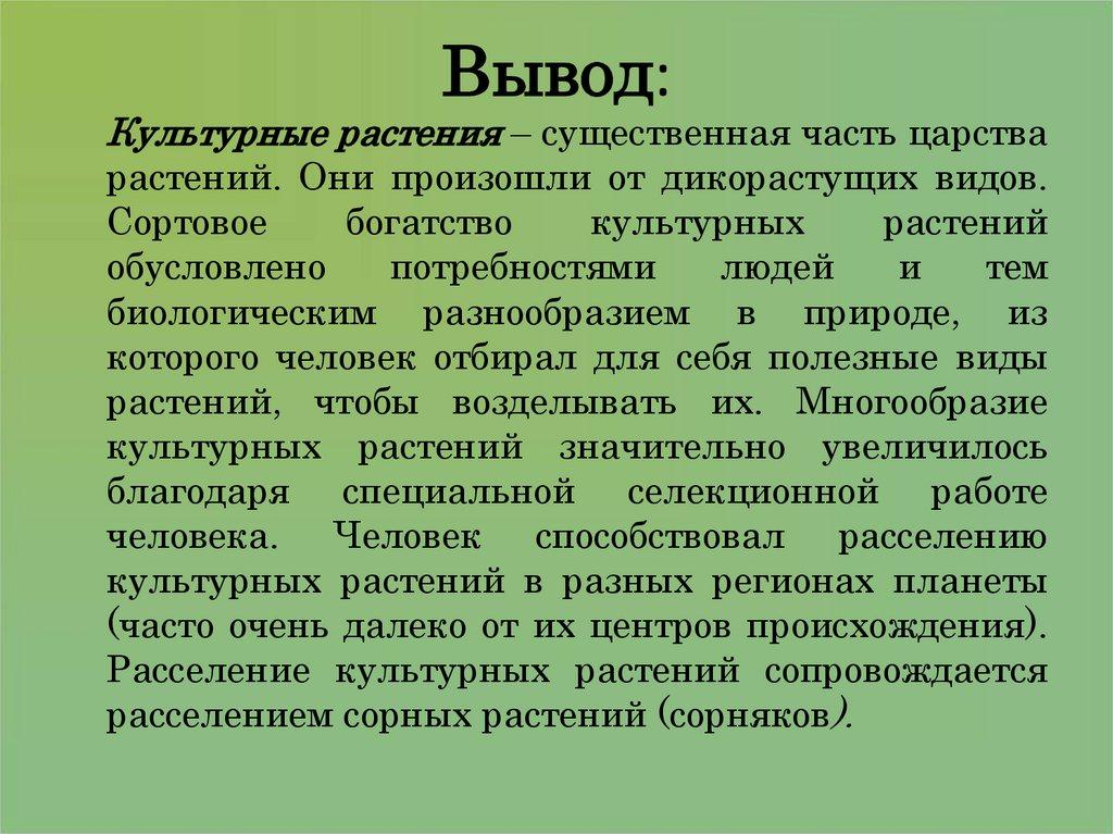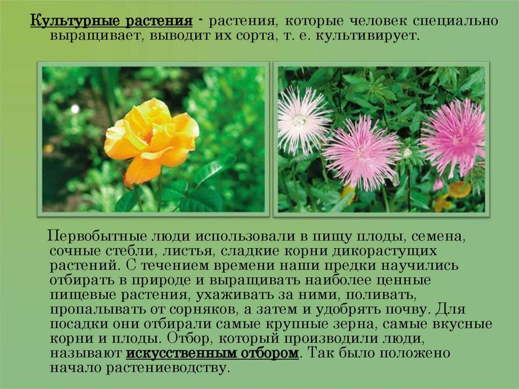 Культурные растения – существенная часть царстварастений. Они произошли от дикорастущих видов.