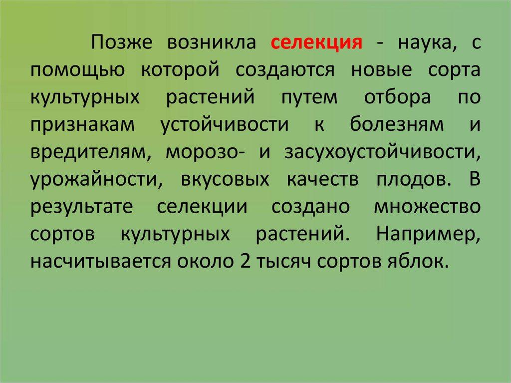 Позже возникла селекция - наука, спомощью которой создаются новые сорта
