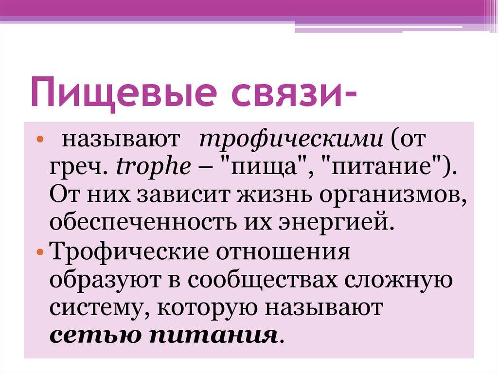 Пищевые связи• называют трофическими (отгреч. trophe – "пища", "питание").