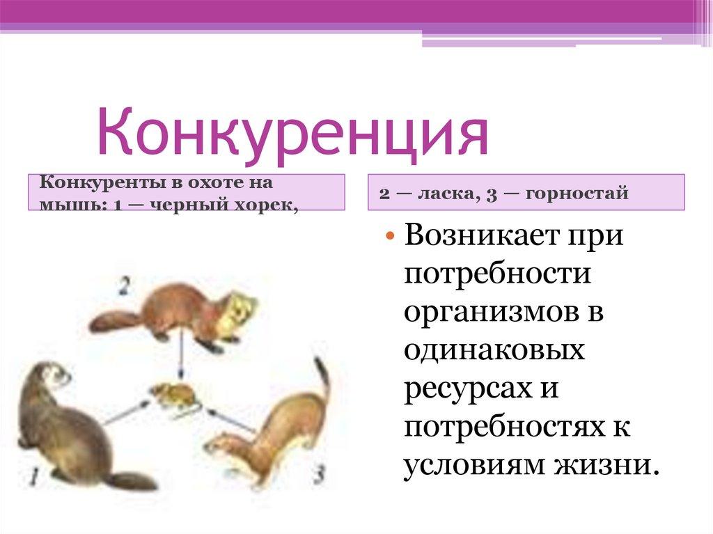 Конкуренты в охоте намышь: 1 — черный хорек,