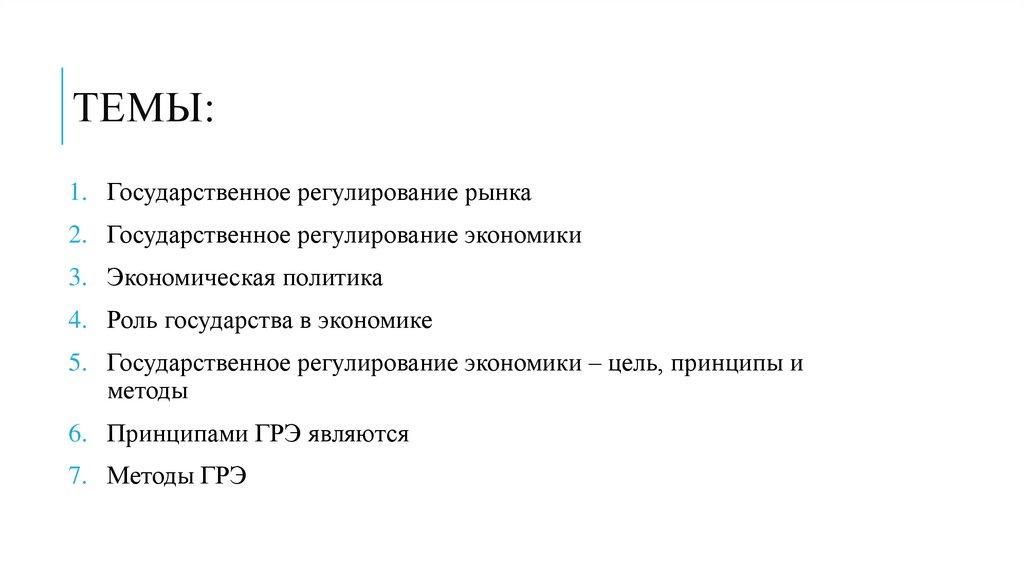 ТЕМЫ:1. Государственное регулирование рынка