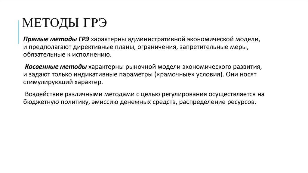 МЕТОДЫ ГРЭПрямые методы ГРЭ характерны административной экономической модели,
