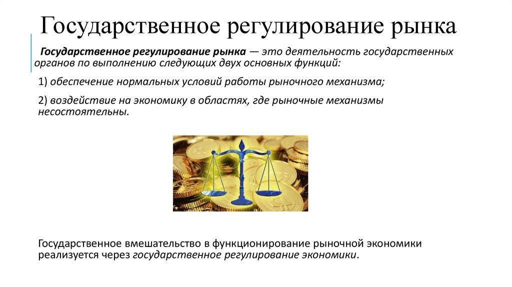 Государственное регулирование рынкаГосударственное регулирование рынка — это деятельность государственных