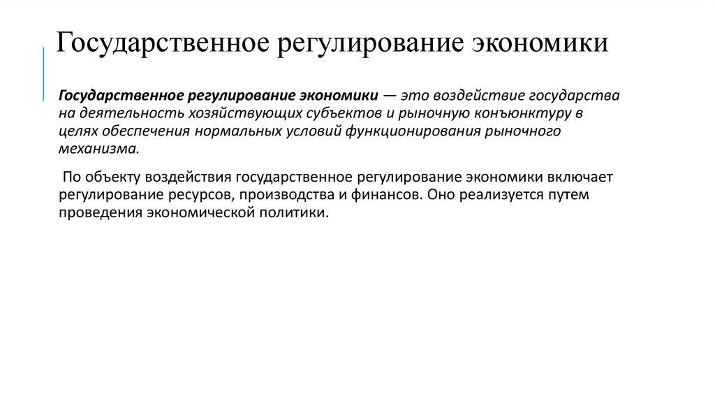 Государственное регулирование экономикиГосударственное регулирование экономики — это воздействие государства
