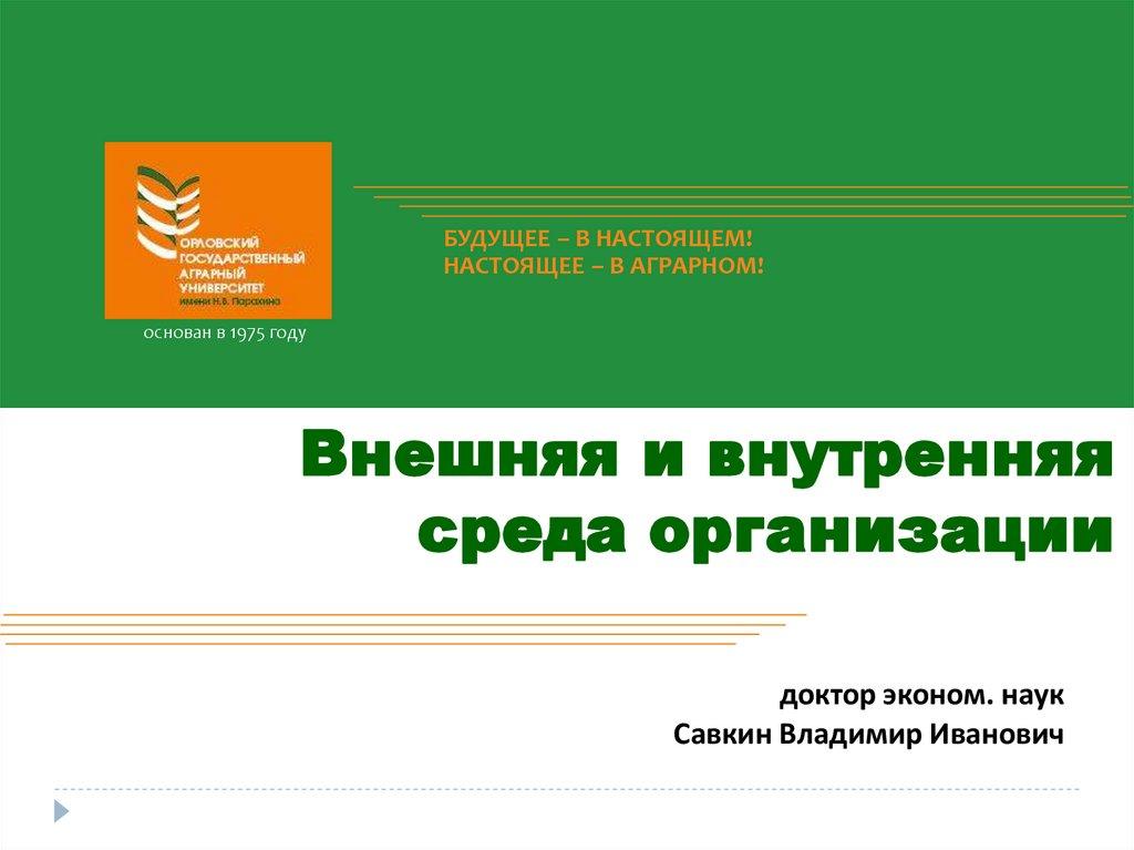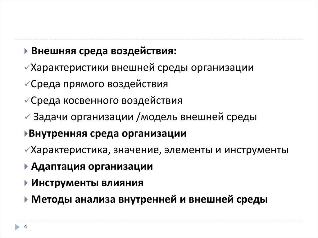 Внешняя и внутренняя среда организации. Внешняя среда воздействия