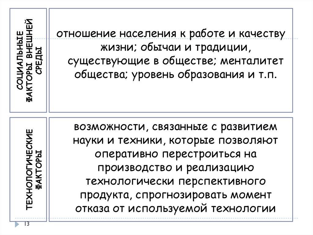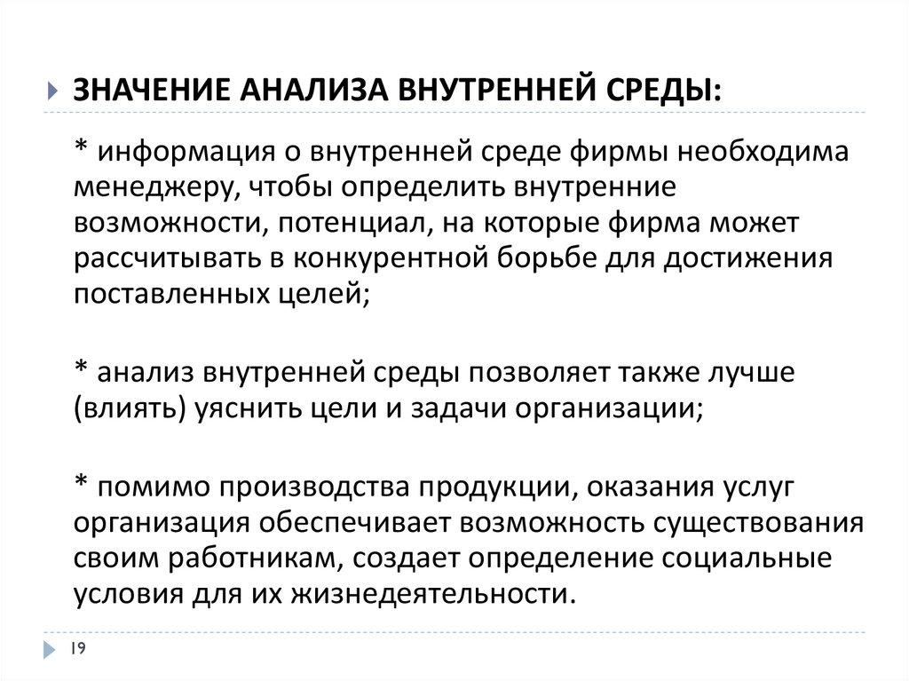 значения внутренней и внешней среды;