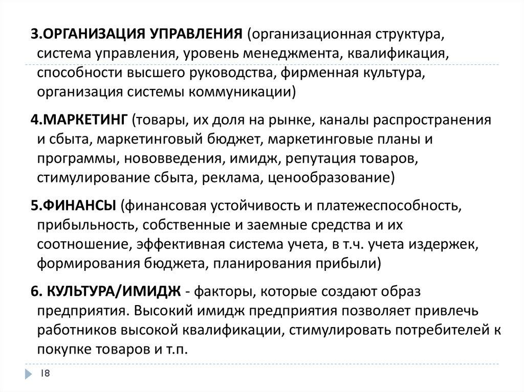 55. Факторы, определяемые деятельностью высшего руководства фирмы: